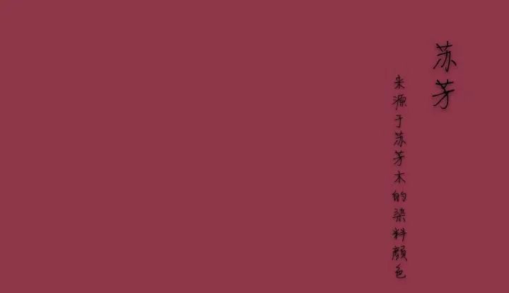 苏芳色源自苏木,苏枋,是重要的红色染料,来源于苏芳木的染料颜色。